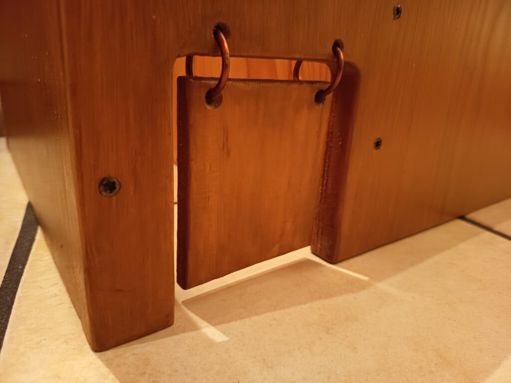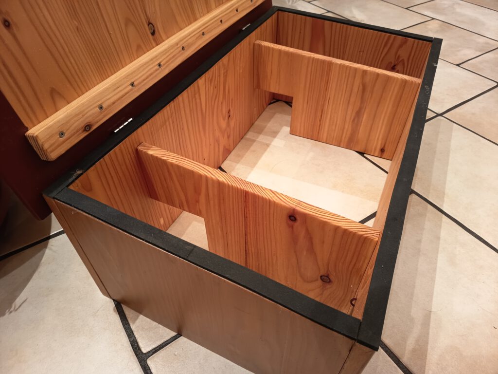 Die Wände des Futterhauses lassen sich komplett demontieren und einfach wieder zusammenstecken, Dank Domino-Dübel (Festool), die ich nur einseitig verleimt habe.